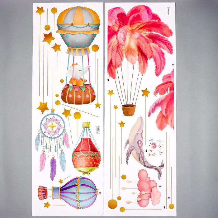 Наклейка пластик интерьерная цветная "Воздушные шары среди звёзд" 30х90 см набор 2 листа