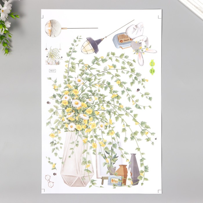 Наклейка пластик интерьерная цветная "Зайчик у вазы с ромашками" 30х45 см