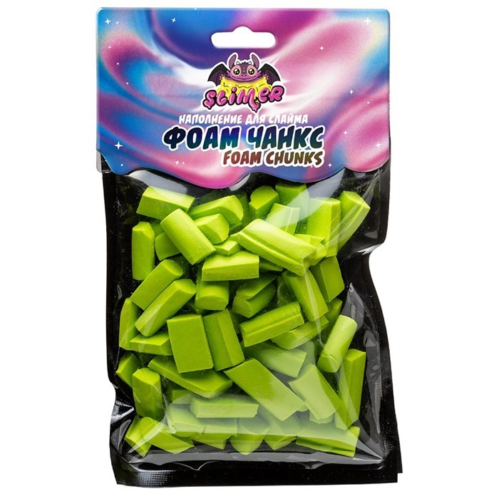 ФОАМ ЧАНКС (Foam Chunkc) - это наполнение для уже готового слайма. Яркие маленькие брусочки упругие, быстро восстанавливают свою форму и делают слайм более приятным по тактильным ощущениям.
