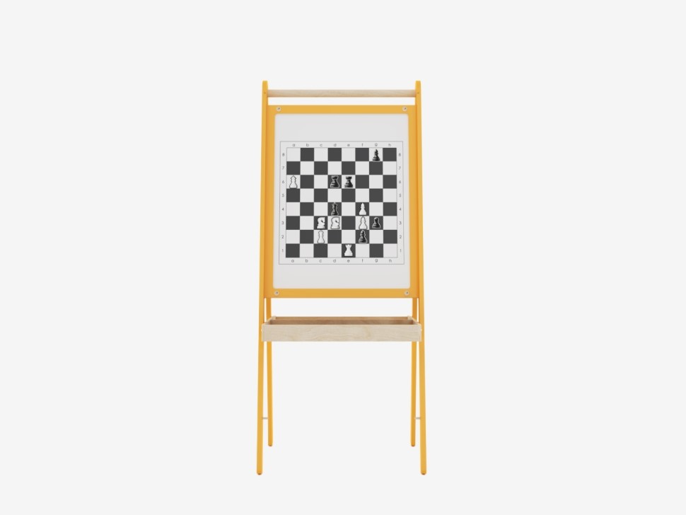 Шахматный складной мольберт для оснащения образовательного учреждения для интеллектуального развития детей. Компактная конструкция складывается и требует мало места для хранения. Игровое шахматное поле есть с обеих сторон мольберта.