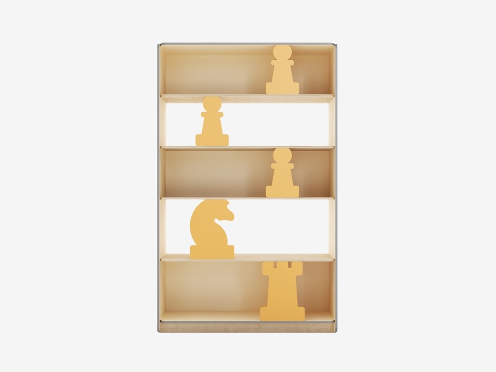 Стилизованный стеллаж разработан специально для хранения набора напольных шахмат. Подходит для оснащения детского сада, школы и других образовательных учреждений.