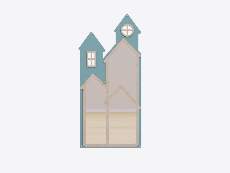 Настенная панель с безопасным зеркалом «Домик» (голубой)