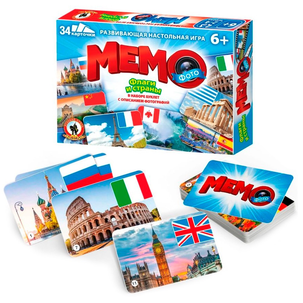 Настольная игра Фото-мемо Флаги и страны 34 карточки 04611