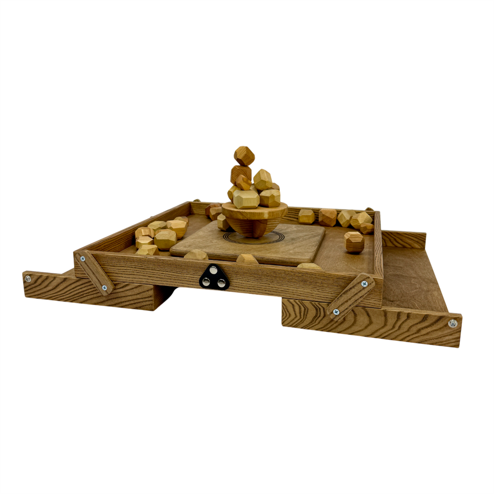 Деревянная настольная игра "Балансирующая Полусфера с камнями M" – это увлекательное испытание для ловкости и стратегического мышления, предназначенное для игроков всех возрастов. Основная задача – построить как можно более высокую и устойчивую гору из деревянных камней на шаткой полусфере, не допустив ее обрушения.