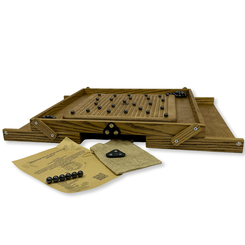 Настольная игра из дерева Магнитные шарики – это захватывающая игра для двух и более игроков, призванная развивать внимательность, стратегическое мышление и мелкую моторику.