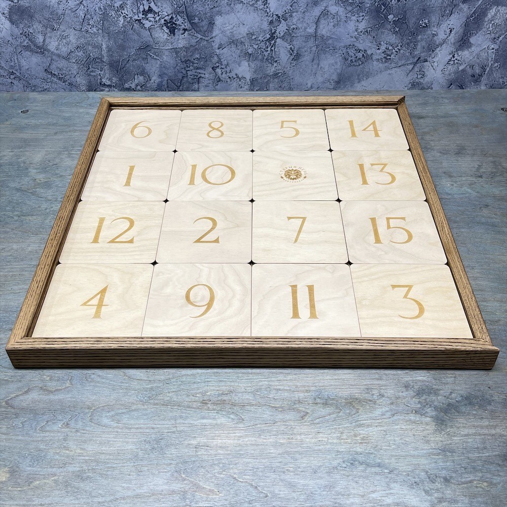 В квадратной коробке расположен набор из 15 одинаковых костяшек с нанесенными на них числами, а также одно незаполненное поле. Задача игрока состоит в том, чтобы расположить квадраты с числами по возрастанию. Для этого их нужно перемещать внутри коробки, сделав это как можно быстрее за отведенное время.
