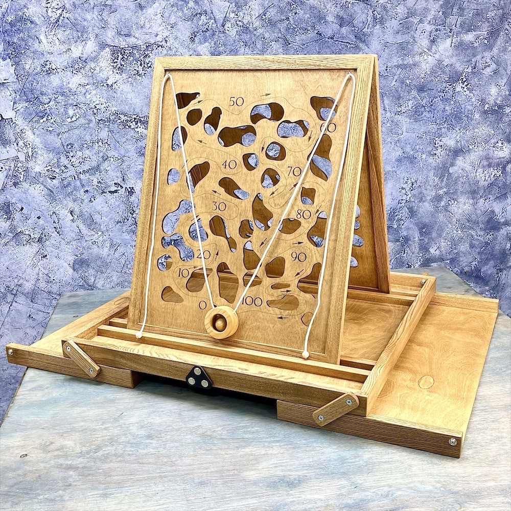 Настольная игра из дерева "Рошфор" предлагает захватывающее соревнование на ловкость и координацию, где цель – провести шарик по извилистому пути, не допустив его падения. Игроки, используя специальные кольца с веревками, должны одновременно маневрировать, чтобы как можно быстрее достичь финиша.