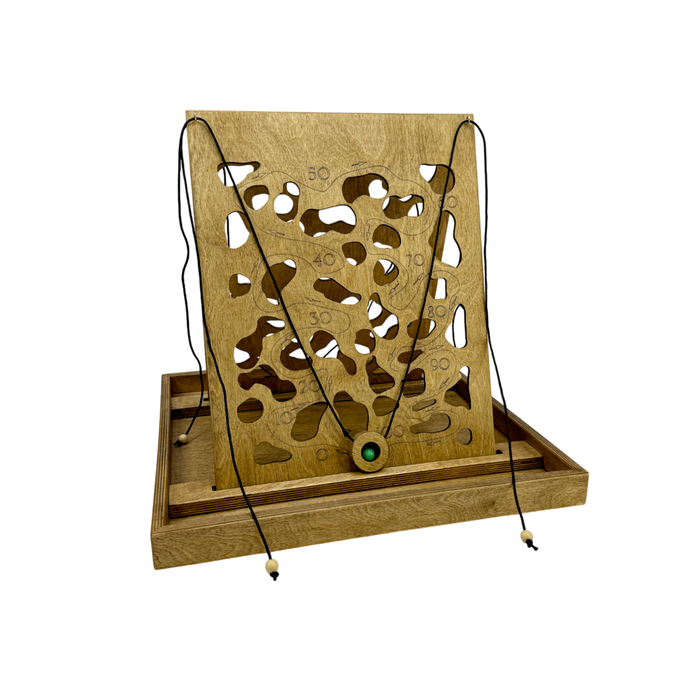 Настольная игра из дерева "Рошфор" предлагает захватывающее соревнование на ловкость и координацию, где цель – провести шарик по извилистому пути, не допустив его падения. Игроки, используя специальные кольца с веревками, должны одновременно маневрировать, чтобы как можно быстрее достичь финиша.