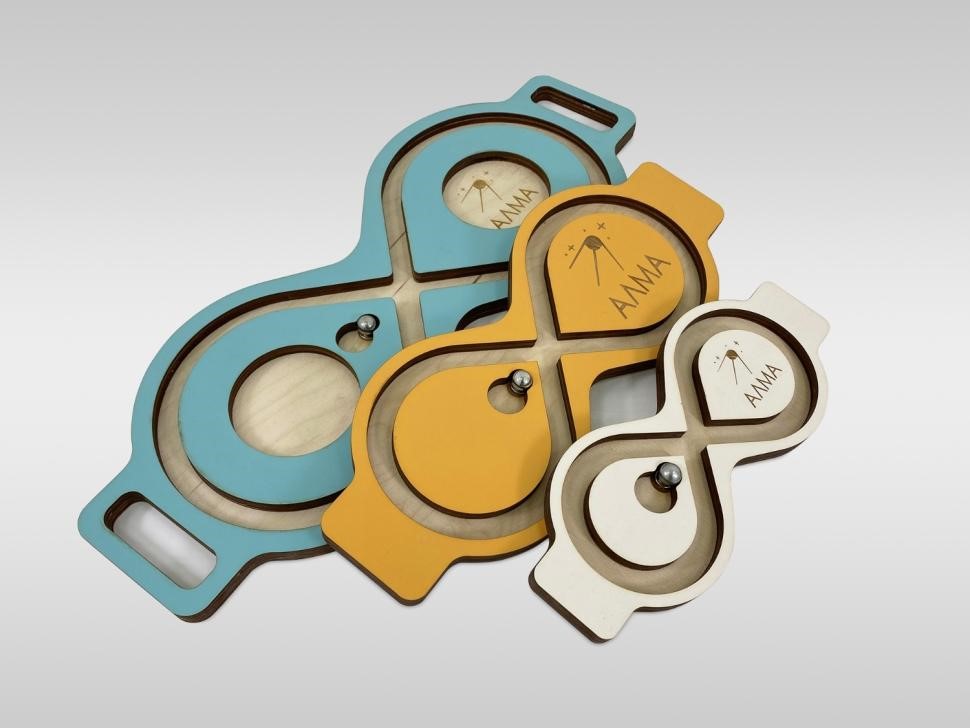 Балансир-лабиринт для развития мозга и снятия эмоционального напряжения. Представляет собой положенную набок восьмёрку с металлическим шариком, который можно катать, наклоняя лабиринт в разные стороны.