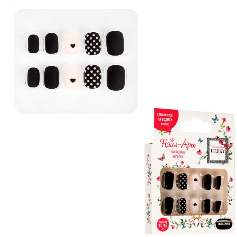Ногти накладные Lukky Нэйл-Арт Black&White 10 наклад.ногтей на клеевой основе,10-16 лет Т26623