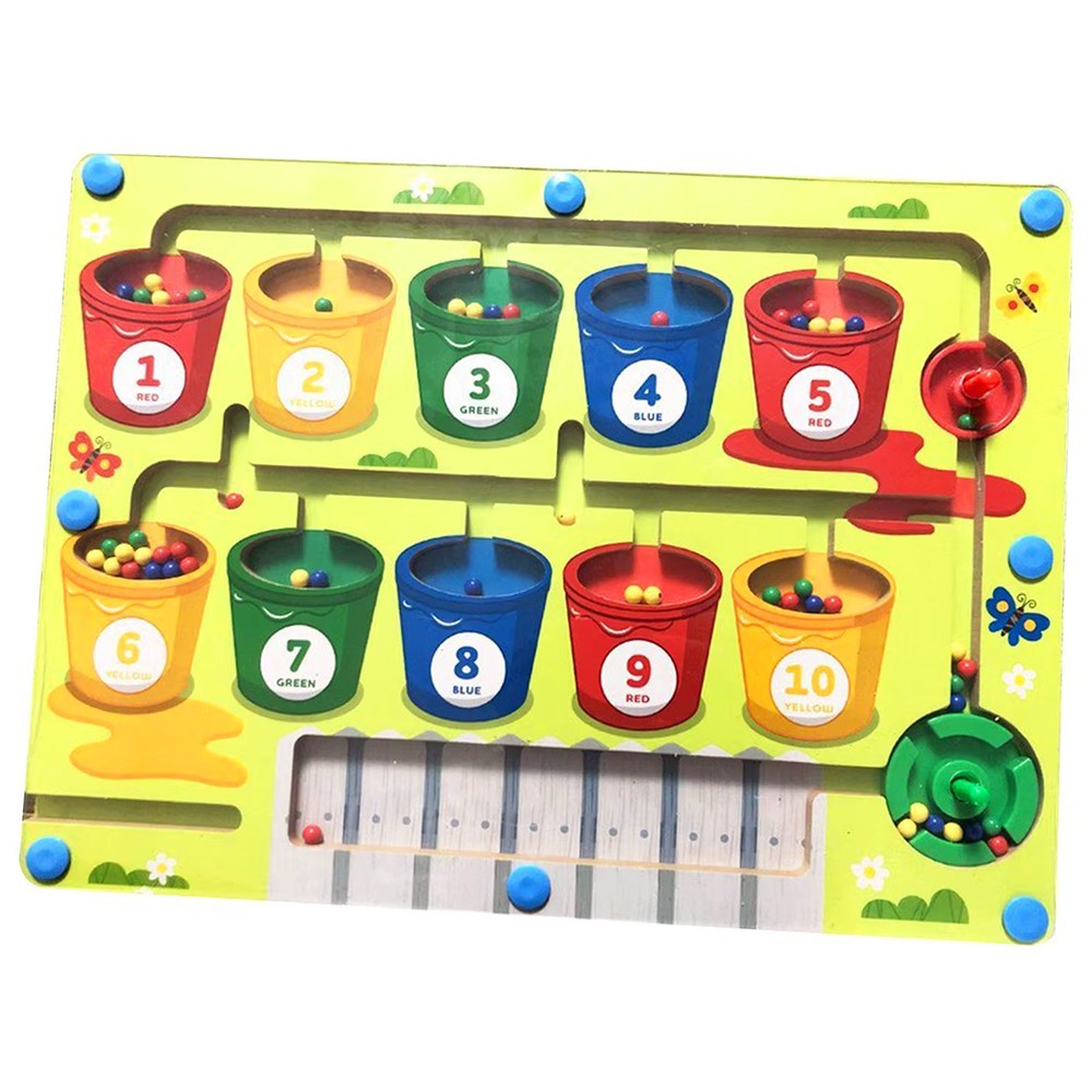 Главная задача игры с Лабиринтом - закатить шарики, распределив их по цветам, в соответствующие стаканчики специальным магнитным карандашом.