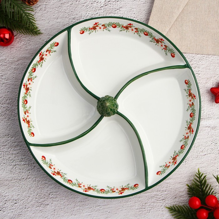 Новый год. Менажница керамическая «Ёлочка», 25 см, цвет белый