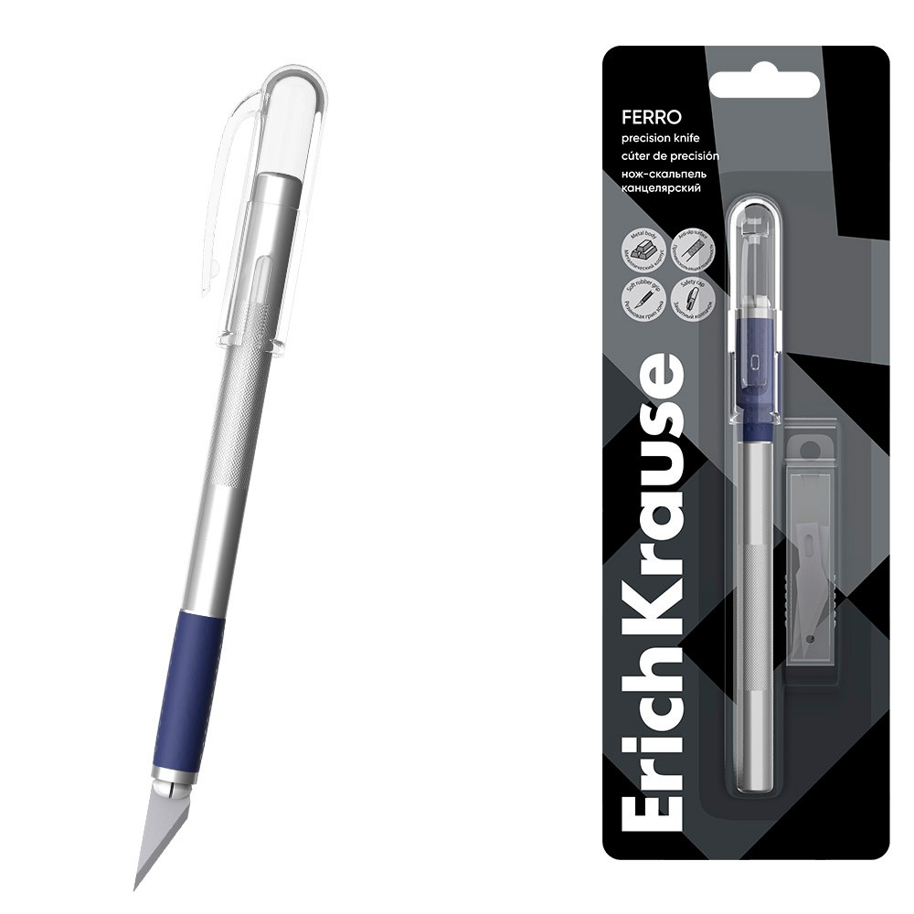 Нож-скальпель канцелярский Ferro, металлический, 2 лезвия в комплекте 16953 ErichKrause