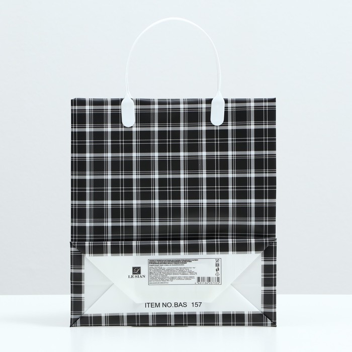 Пакет "Черный в клетку", мягкий пластик, 26 x 23 см, 110 мкм (комплект 10 шт)