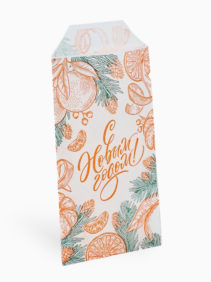 Пакет фасовочный новогодний крафтовый «Сочные мандарины», 8 х 16 см, без окна (комплект 50 шт)