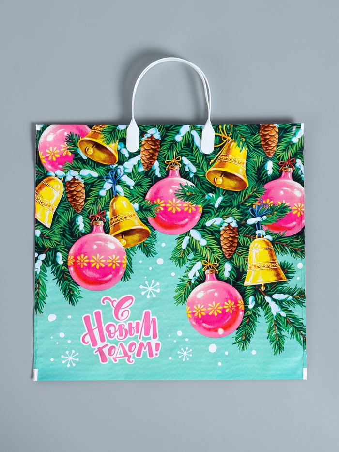 Новогодний перезвон в каждой детали! Праздничный пакет «Динь Дон» с пластиковой ручкой — прочная и нарядная упаковка для новогодних подарков. Сочетает повышенную грузоподъемность и праздничный дизайн с зимними мотивами.