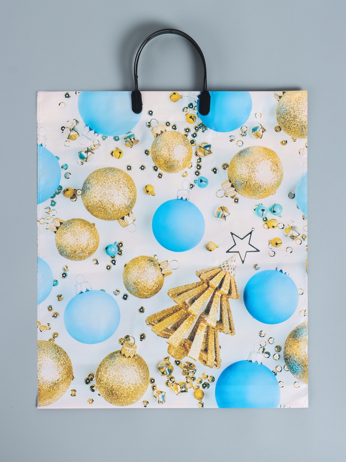 Пакет новогодний «Елочка с шарами», полиэтиленовый с пластиковой ручкой, 38?45 см (комплект 10 шт)