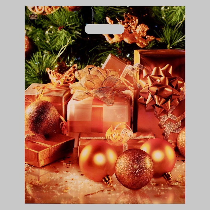 Пакет новогодний подарочный «Золотые шары», полиэтиленовый с вырубной ручкой, 45?38 см (комплект 50 шт)