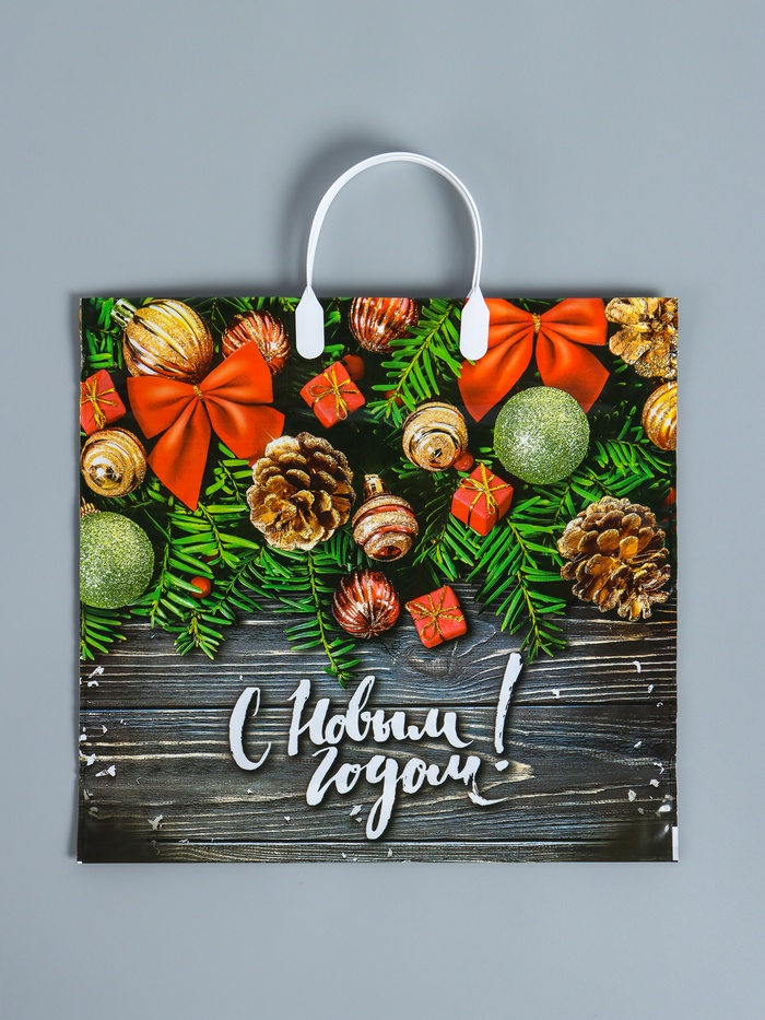 Яркая упаковка для праздничных сюрпризов! Новогодний пакет «Рождественские бантики» с ручкой (38×35 см) — прочный и красочный вариант для подарков любого размера. Яркий дизайн создаёт праздничное настроение, а практичные характеристики делают пакет удобным в использовании.