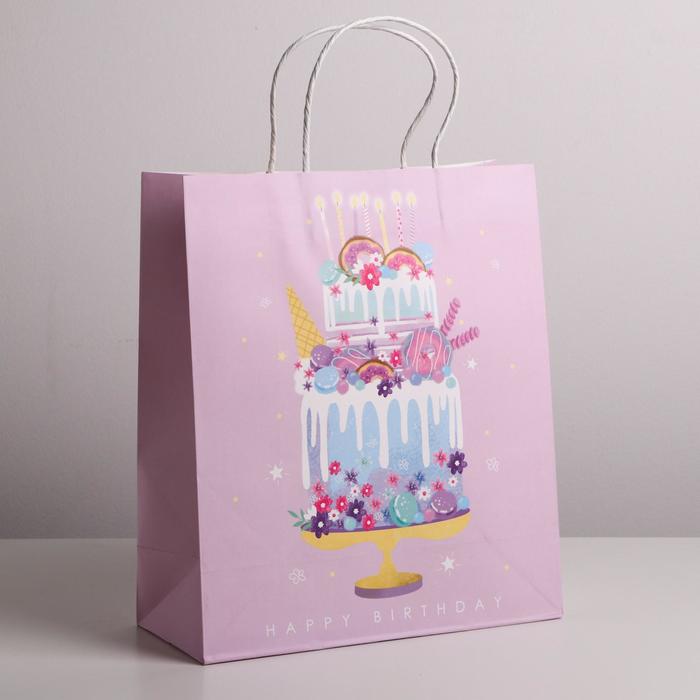 Пакет подарочный крафтовый, упаковка, Happy Birthday, 26 х 30 х 11,5 см
