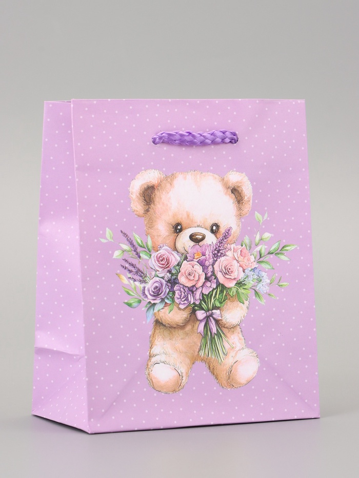 Пакет подарочный ламинированный «Цветы от Мишки» 11.5?14.5?6.5 см (комплект 4 шт)