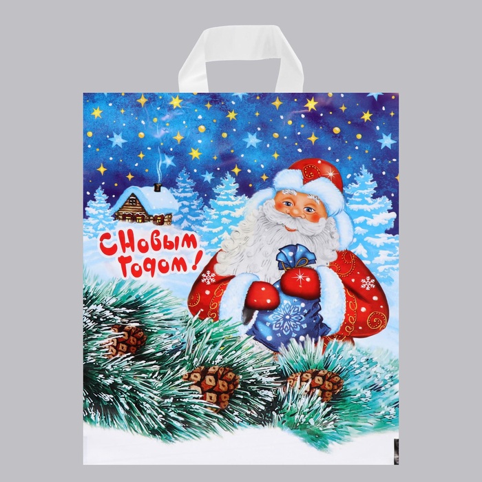 Пакет подарочный новогодний «Добрый дед», полиэтиленовый с петлевой ручкой, 28?35 см (комплект 25 шт)