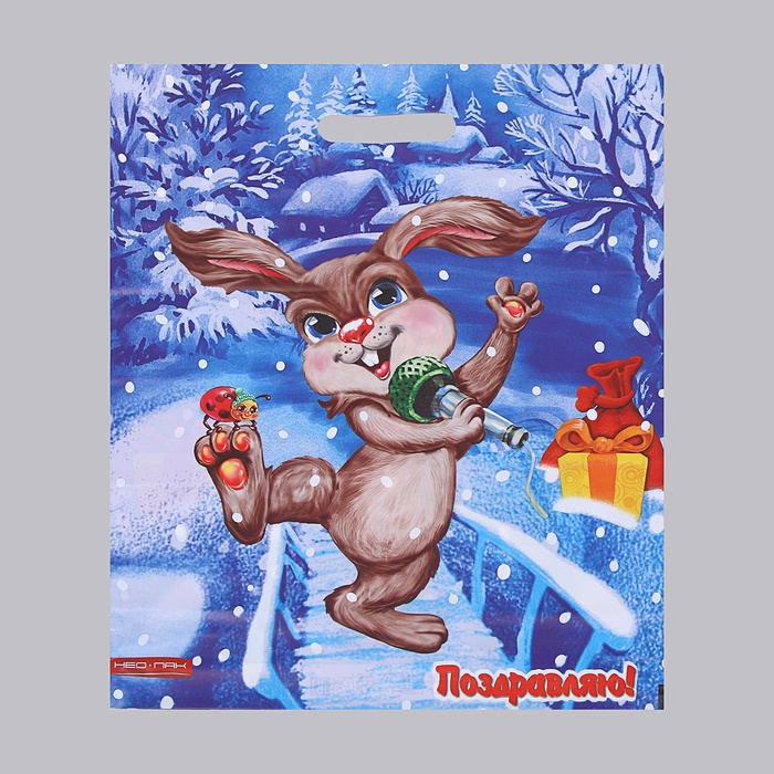 Пакет подарочный новогодний «Веселый зайка», полиэтиленовый с вырубной ручкой, 38?47 см (комплект 25 шт)