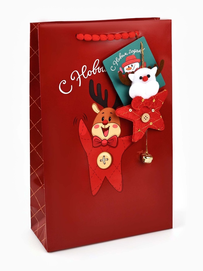 Пакет подарочный «С Новым годом», с ёлочной игрушкой и шильдиком, Дед Мороз, 25.5×30×9 см