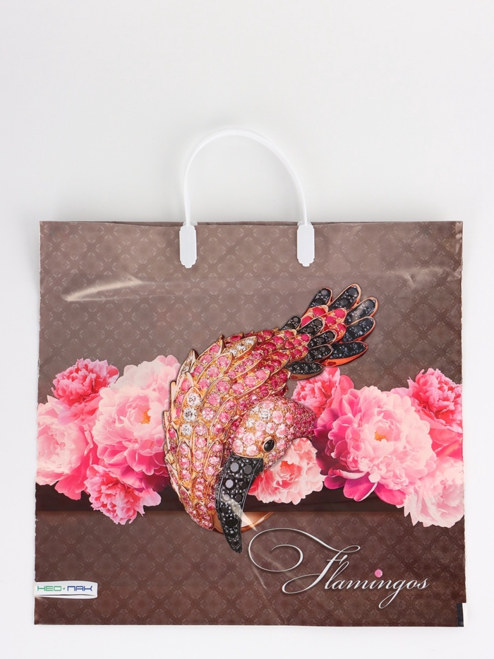 Пакет "Розовый фламинго, полиэтиленовый, пластиковая ручка 37х35 см 90 мкм 1095891 (комплект 5 шт)