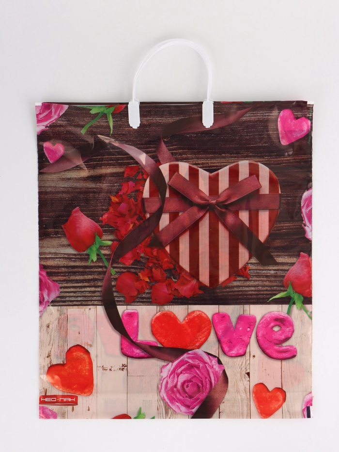 Пакет "С любовью, полиэтиленовый с вырубной ручкой, пласт. 38х44 см, 90 мкм (комплект 5 шт)