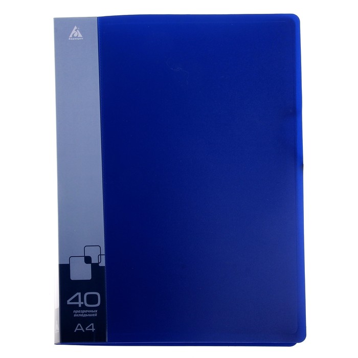 Папка А4, 40 прозрачных вкладышей, 650 мкм, торцевой карман с бумажной вставкой, синяя