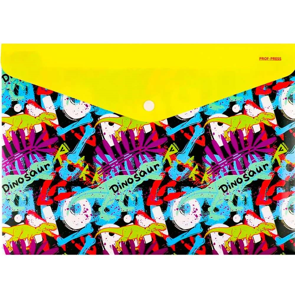Папка-конверт на кнопке А4, 180мкм, DINOSAUR ПК-3029