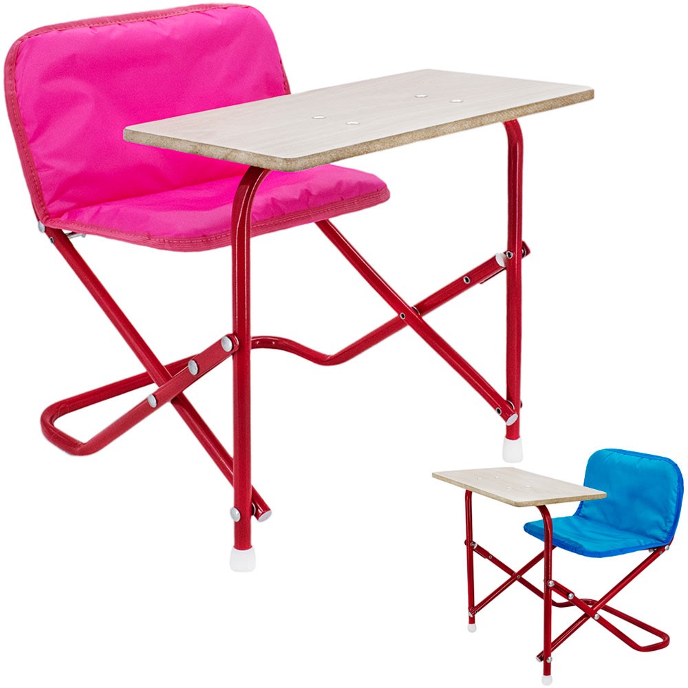 Разложите парту в рабочее положение и раздвиньте опоры до упора, опустив столик и сиденье стула.