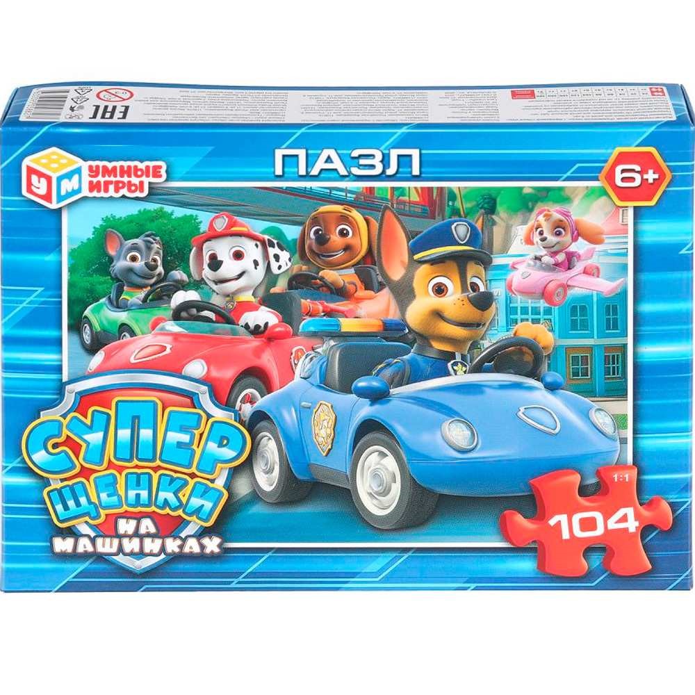 Пазл 104 Суперщенки в машинках 4630395058827