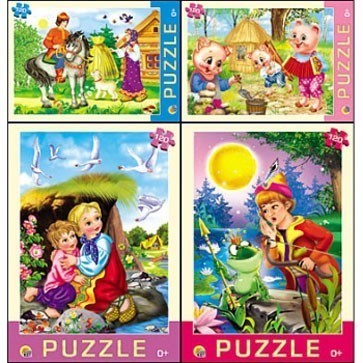 Пазлы "Детские сказки", состоящий из 120 картонных элементов, изображает известные сказки, сюжет которых знаком с детства многим поколениям. Яркая картинка и милые персонажи заинтересуют ребенка, а получаемое изображение может стать украшением детской комнаты, если наклеить его на твердую основу. Размер собранной картинки 22,5х16,5 см. Товар представлен в ассортименте.