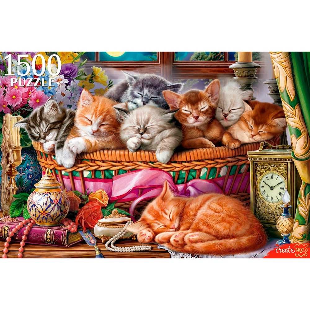 Пазл 1500 Ночные котята в корзине Ф1500-6639