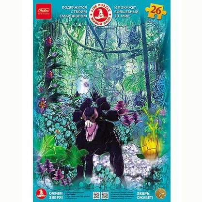 Пазл на 26 элементов "Зверь" - это не обычная мозаика. Если полностью собрать картинку, потом направить на получившееся изображение камеру мобильного устройства Apple или Android, предварительно скачав на него бесплатное приложение «LivePhoto», можно оживить главного персонажа на картинке - грозного доисторического хищника.