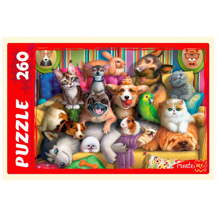 Пазл представляет собой картинку, состоящую из некрупных деталей разной формы, соединяющихся замком, который делает конструкцию прочной.