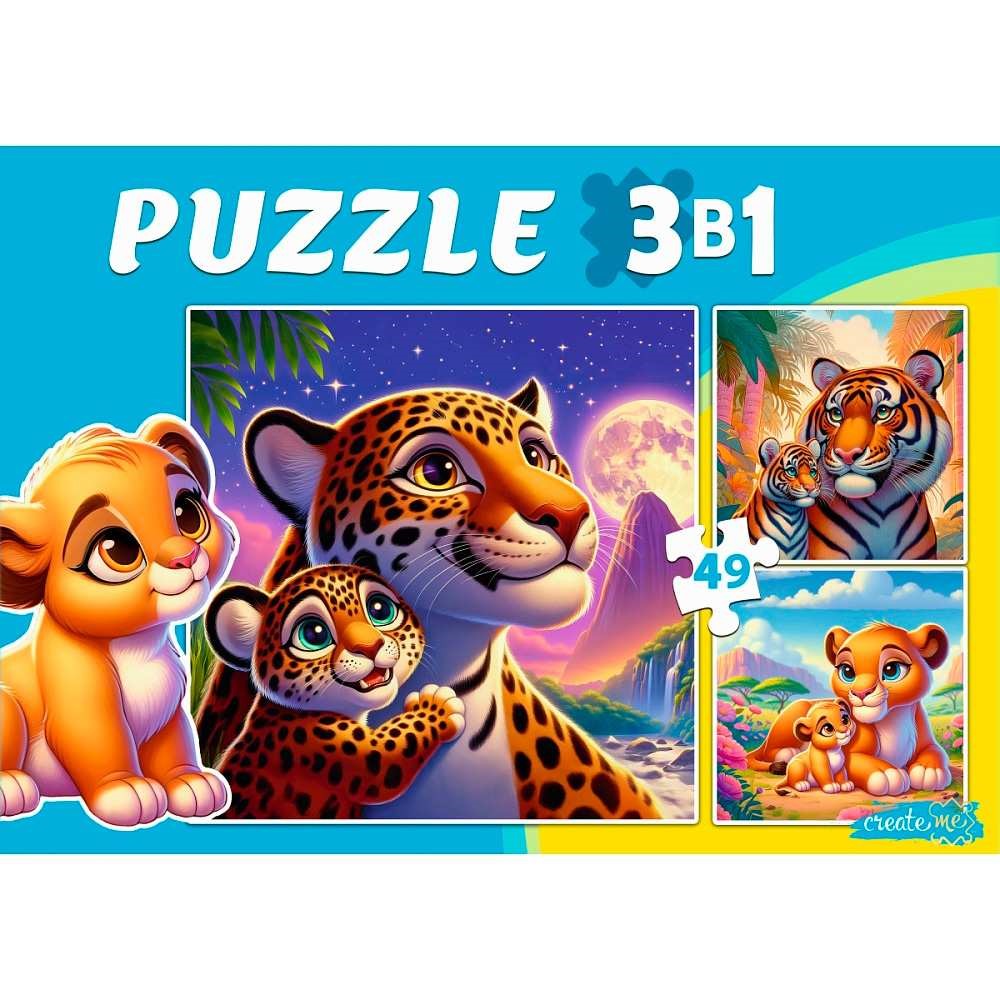 Пазл 3 в 1 Звери с детенышами 3 картинки по 49 эл. П-3462