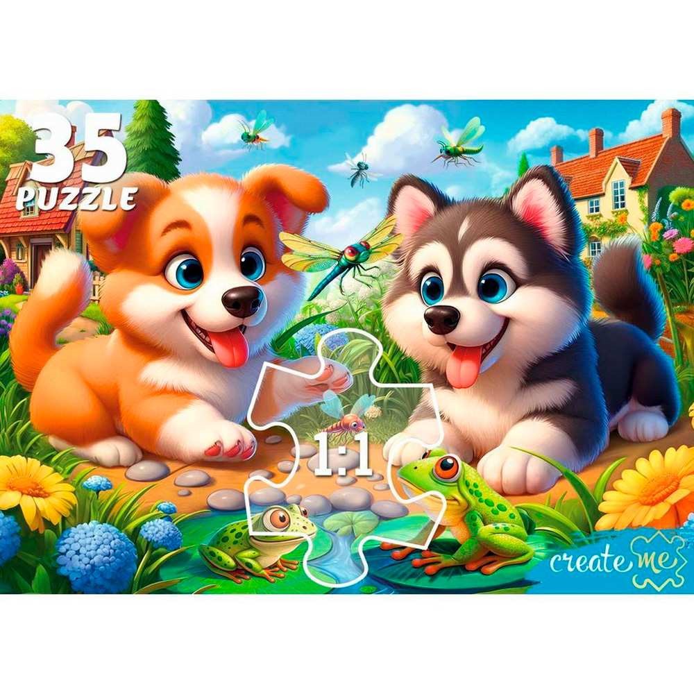 Пазл 35 Макси Щенки и лягушки УК35-2390