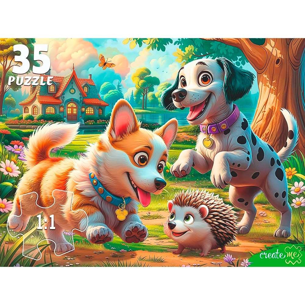 Пазл 35 Щенки и ежик Ф35-3429