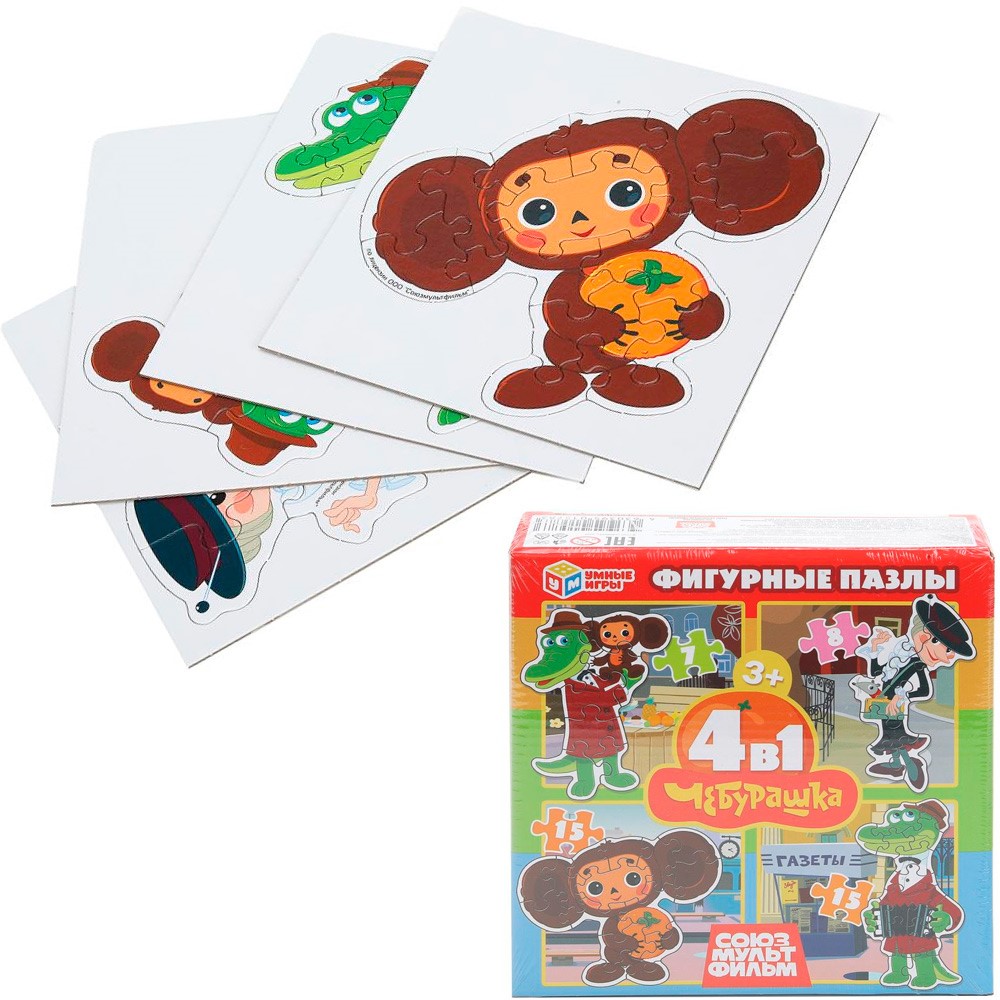 Набор пазлов в коробке 4 в 1 «Союзмультфильм. Чебурашка» ТМ «Умные игры» – отличный подарок для маленьких любознаек.