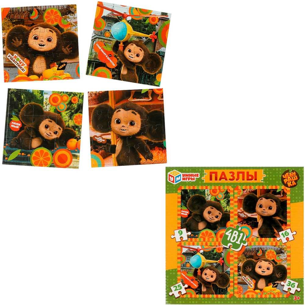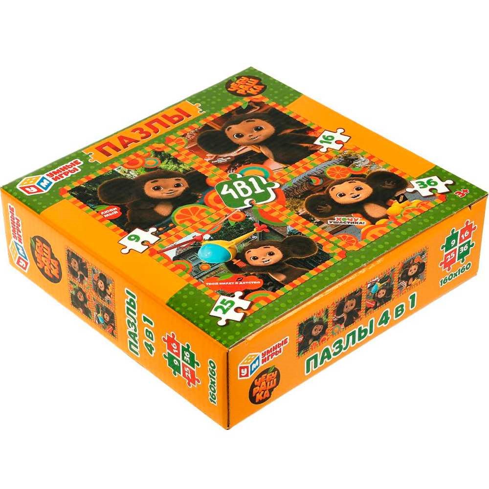 Пазл 4 в 1: 9, 16, 25, 36 д. Чебурашка 4660254421608