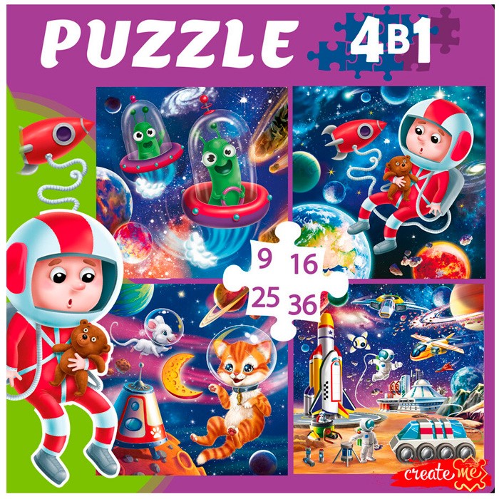 Пазл 4 в 1 9,16, 25, 36 эл. Космический вираж П-8388