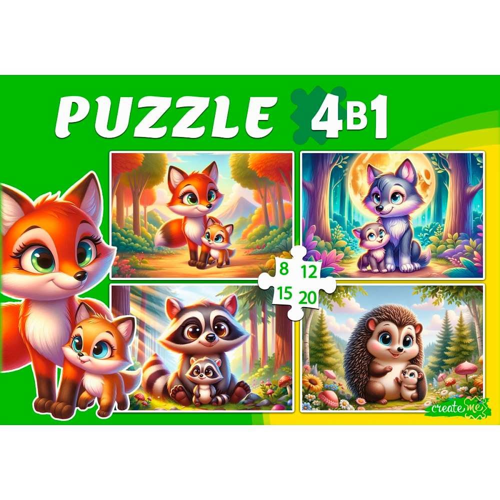 Пазл 4 в 1 Лесные зверушки 8, 12, 15, 20 эл. П-3413