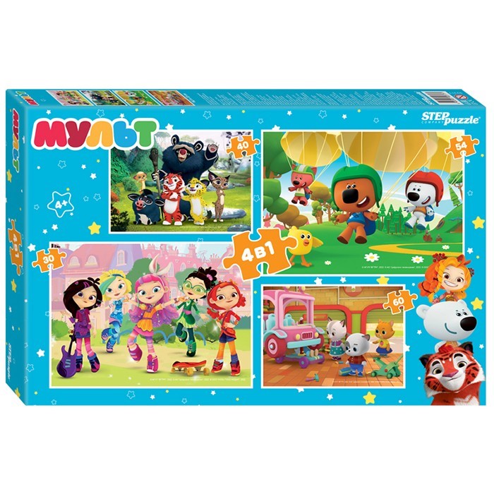 Комплектация: детали пазла - 184 шт. (4 картинки по 30, 40, 54 и 60 эл.)