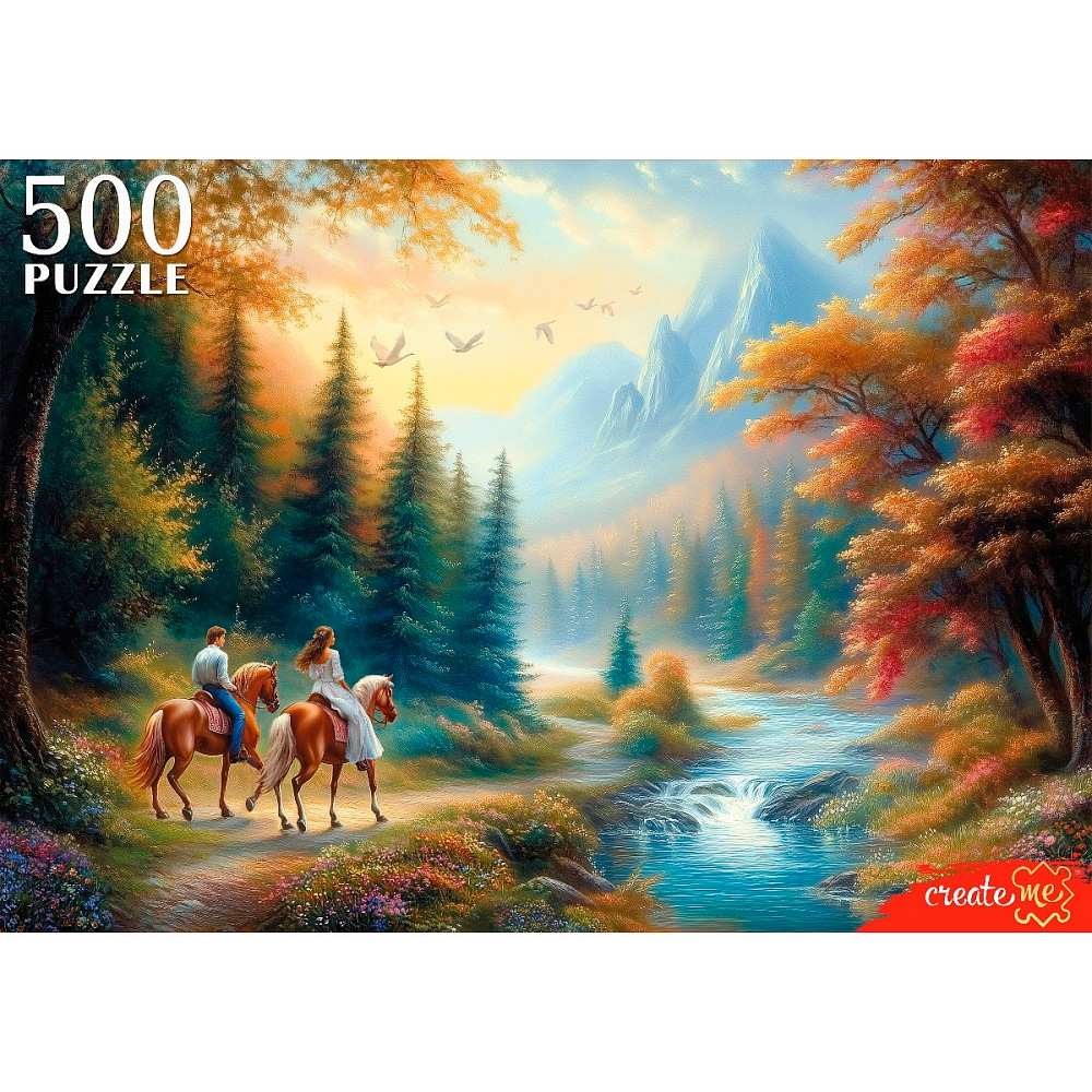 Пазл «Пара на лошадях в горах» - станет первой яркой головоломкой для ребёнка.