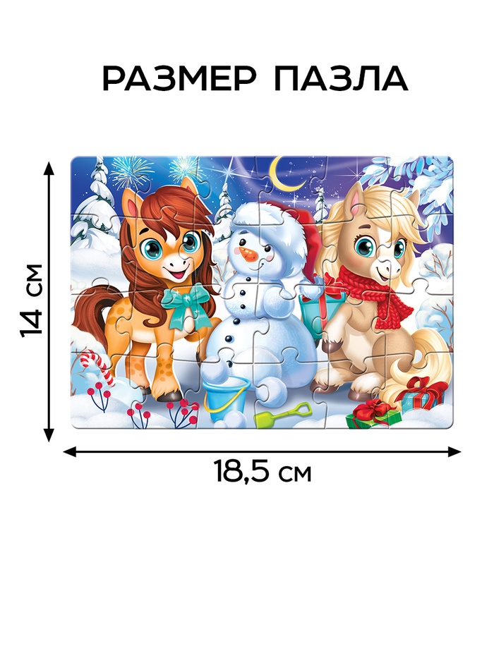 Пазл «Новогодние забавы лошадок», 24 детали, большая коробка (комплект 3 шт)