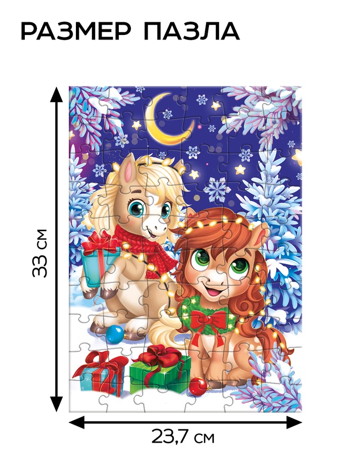Новогодний пазл «Лошадки» — это яркая головоломка из 60 элементов, которая перенесёт ребёнка в атмосферу зимней сказки и праздника. Этот классический пазл создан для детей от 3 лет и станет прекрасным подарком или развлечением на новогодних каникулах. Собирая пазл, ребёнок создаёт красочную картину с милыми лошадками, которые дарят ощущение радости и волшебства.