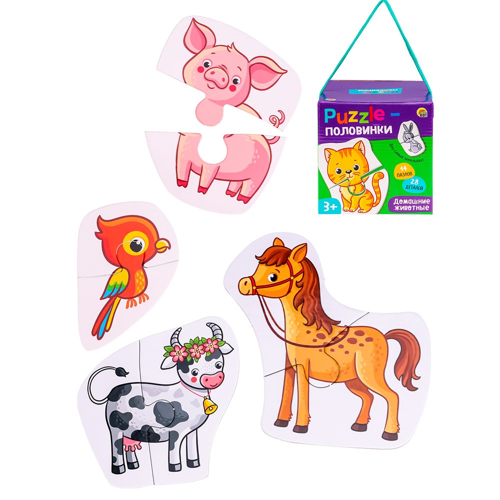 - игра по принципу пазла: нужно собрать картинки, состоящие из двух элементов;